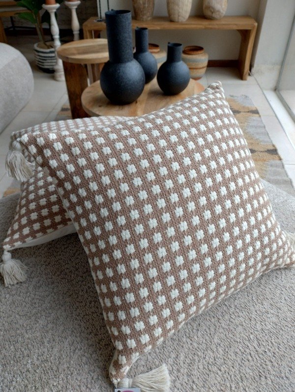 Almohadon tejido con borlas