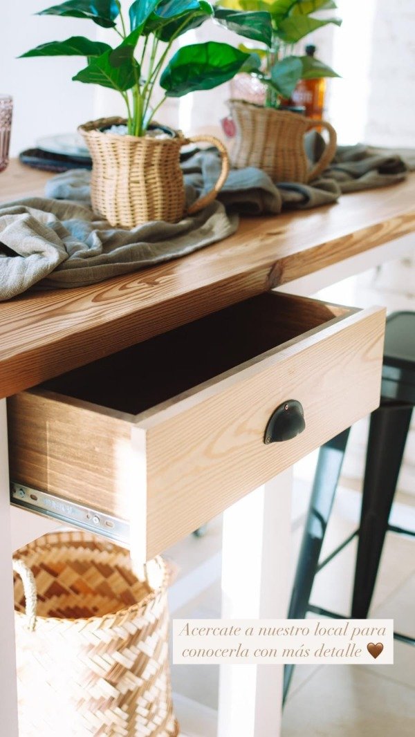 Barra de madera con rueditas, dos cajones