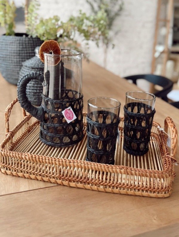 Jarra de fibra natural color negro con manija