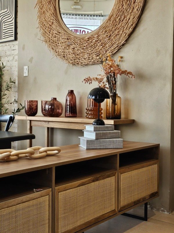 Estructura enchapada de petiribi, 3 cajones con esterilla