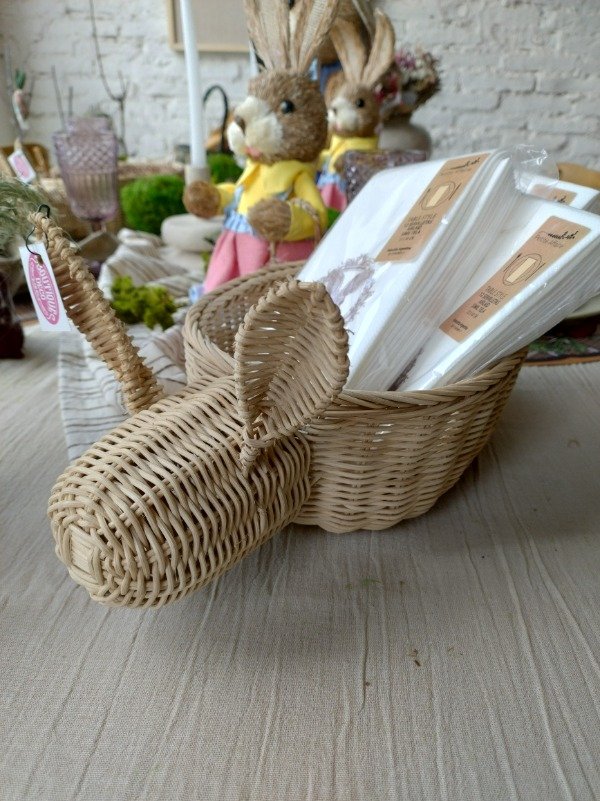 Canasta de ratan forma conejo